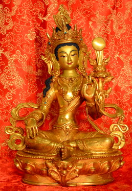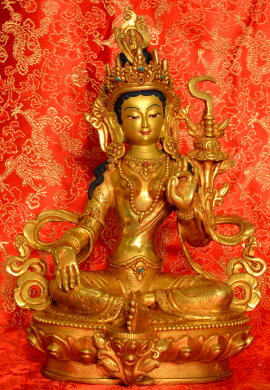 Each the following statues represent Tara’s emanations and are eight-inches tall. They were crafted by artisans in Nepal in accordance with the tradition of Terton Chokgyur Lingpa and Jamyang Khyentse Wangpo, two great Tibetan masters of the nineteenth century who revitalized the Buddha’s teachings.